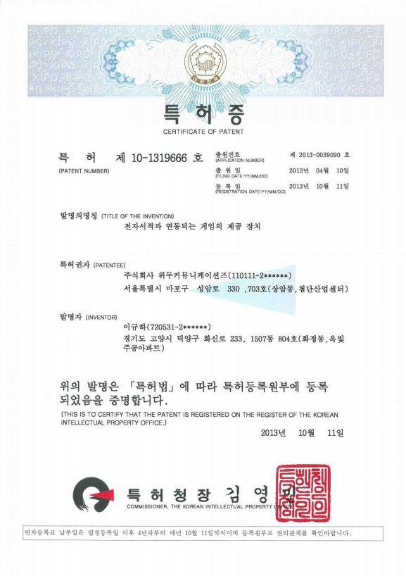 [한국/특허] 전자서적과 연동되는 게임의 제공 장치